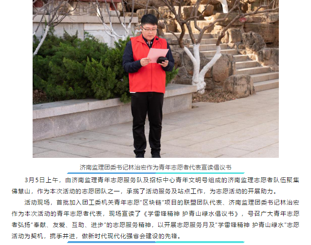 “学雷锋精神 护青山绿水”——济南监理青年志愿者参加市直机关团工委助力生态文明志愿行动